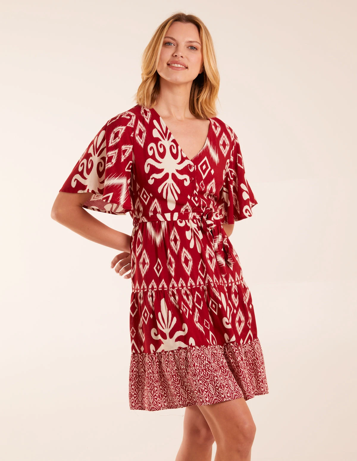A gorgeous pick for summer! This aztec button front mini is an for easy everyday style.