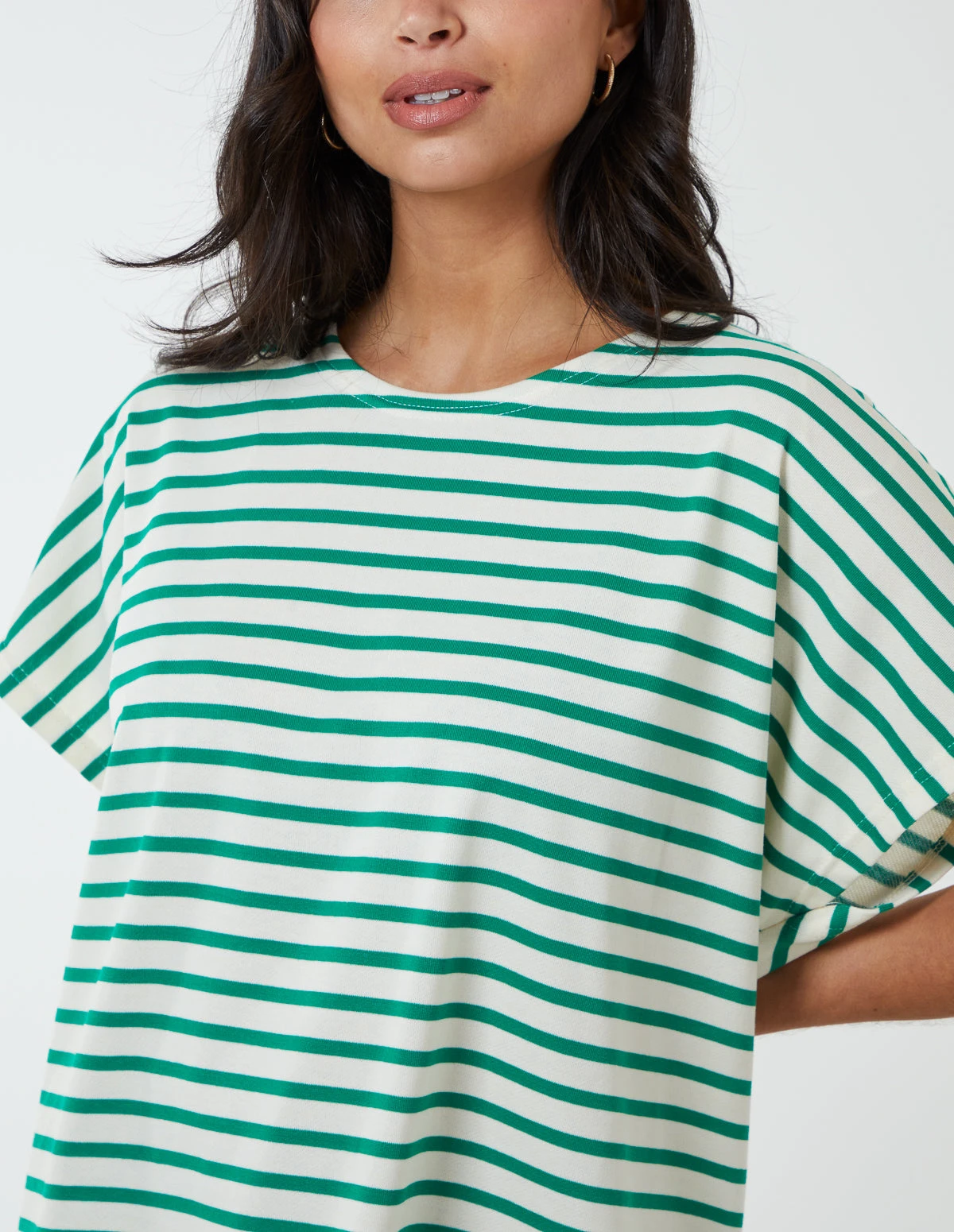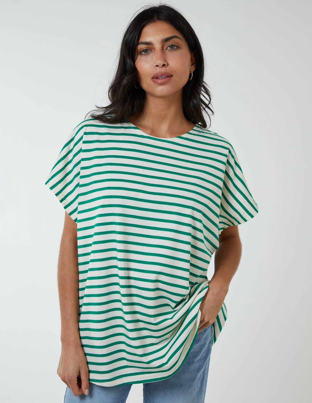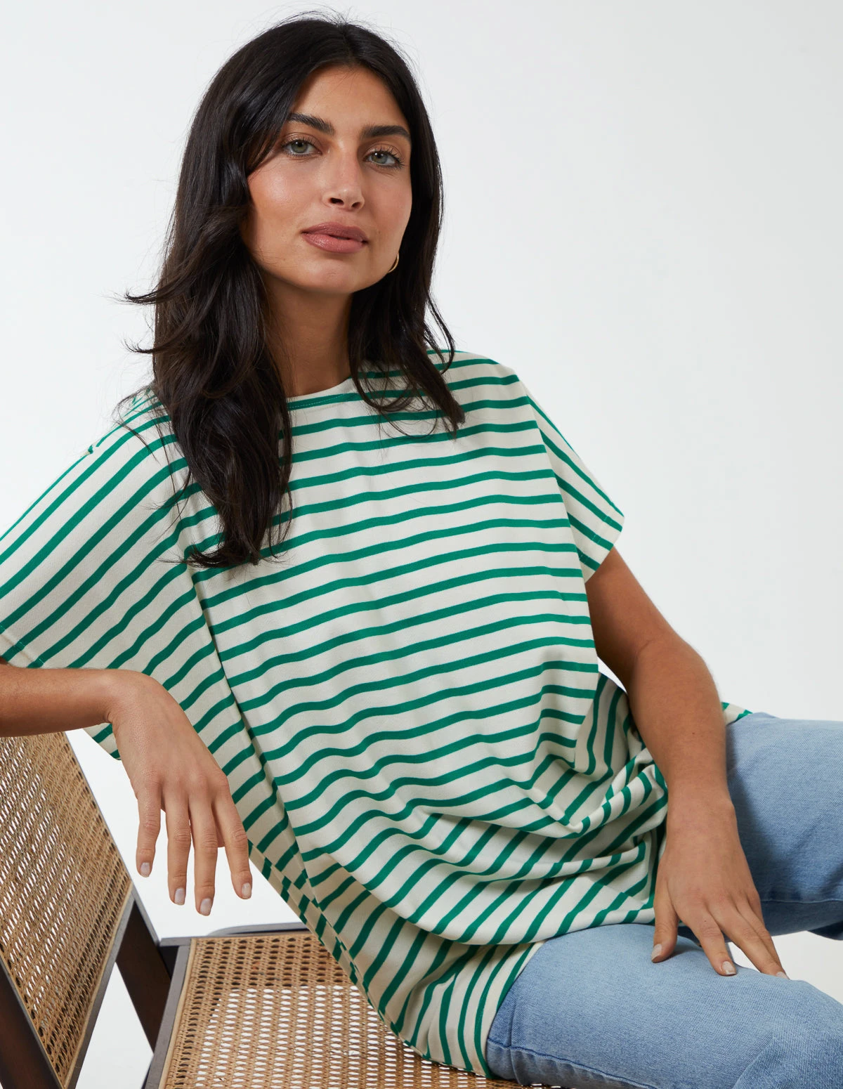 A stylish striped top perfect for those more casual days! This oversized top is a perfect through on and go option!