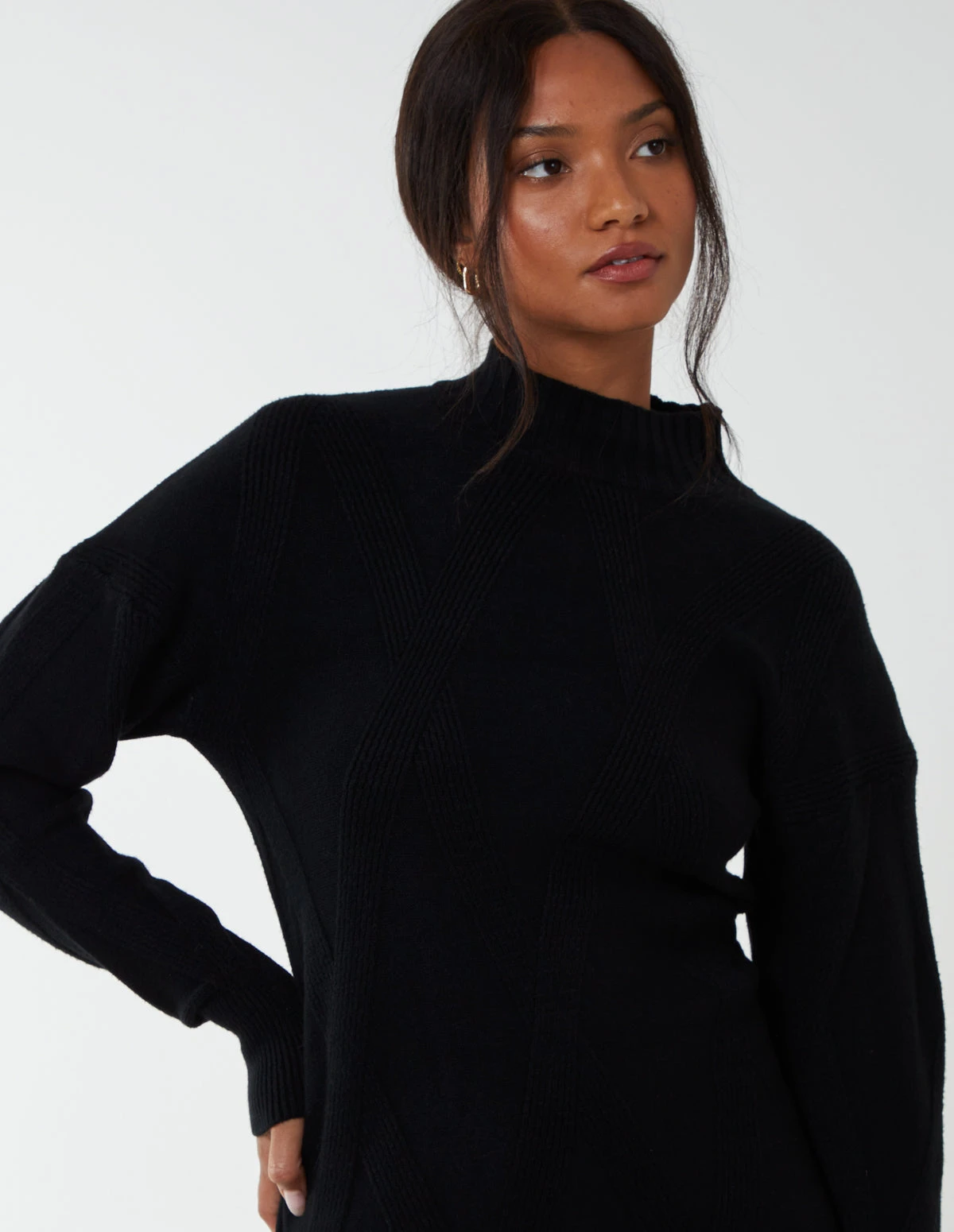 Need something cosy but stylish? This Black Diamond Print Jumper Dress is the only style you need for your new season wardrobe.