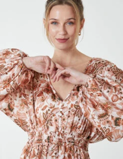 A dress that will be sure to turn heads! With it’s beautiful animal print, and feminine wrap front, with it’s shirred waist, Take it from day to night with gold heels and a red lip. Â Â