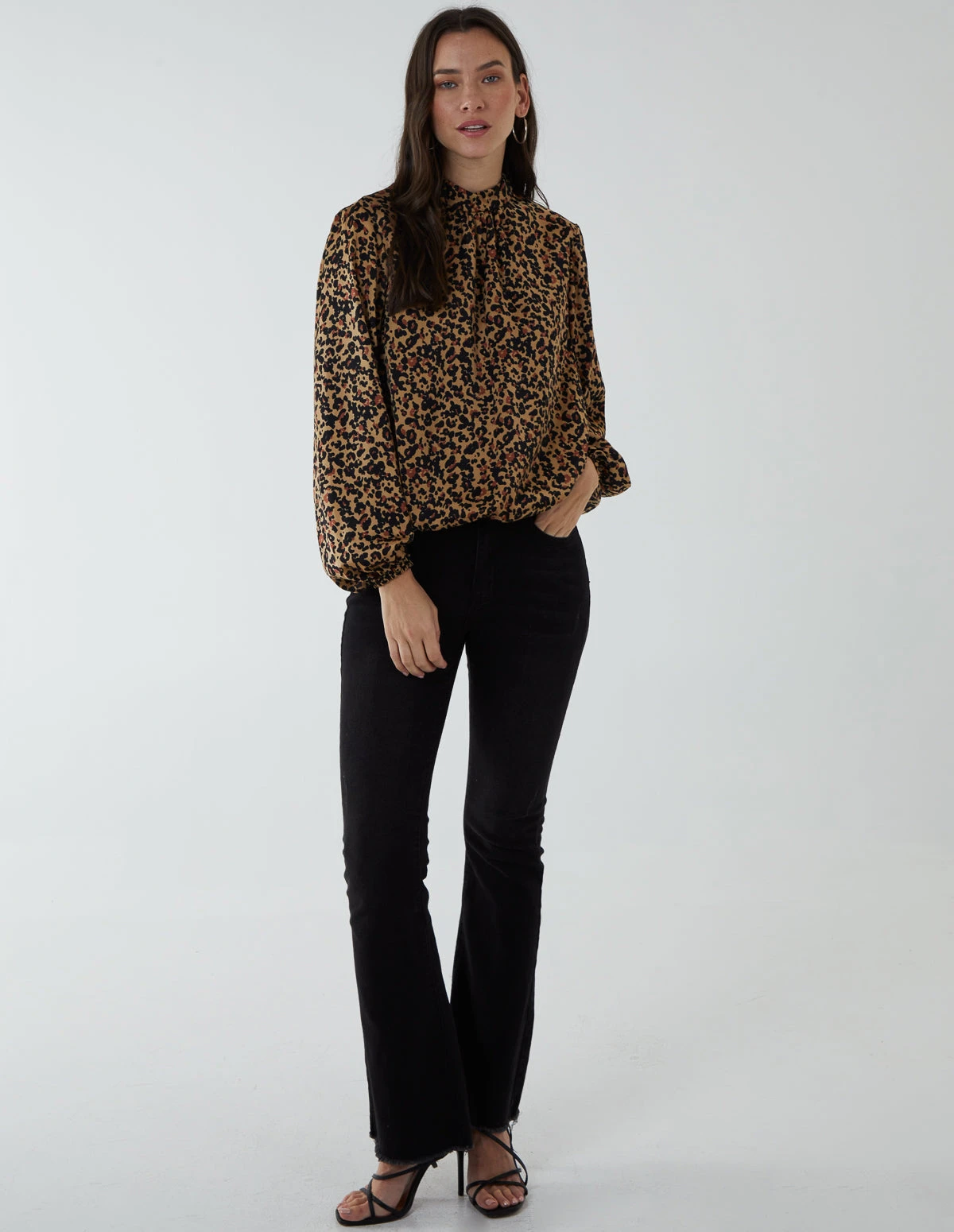 A truly classy blouson top, with puff long sleeves and a high neck to keep things simple yet professional. A perfect top to wear at your workplace, style with black trousers and high heel shoes.Â