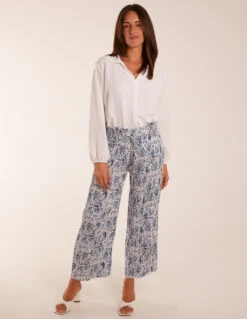 Whether you’re vacationing or staycation-ing, these wide leg trousers are a staple pick. Finished with a flattering shirred waistline, they’re also illuminated by the abstract print, perfect on those warm weather days. Partner with gold sandals to complete the look.