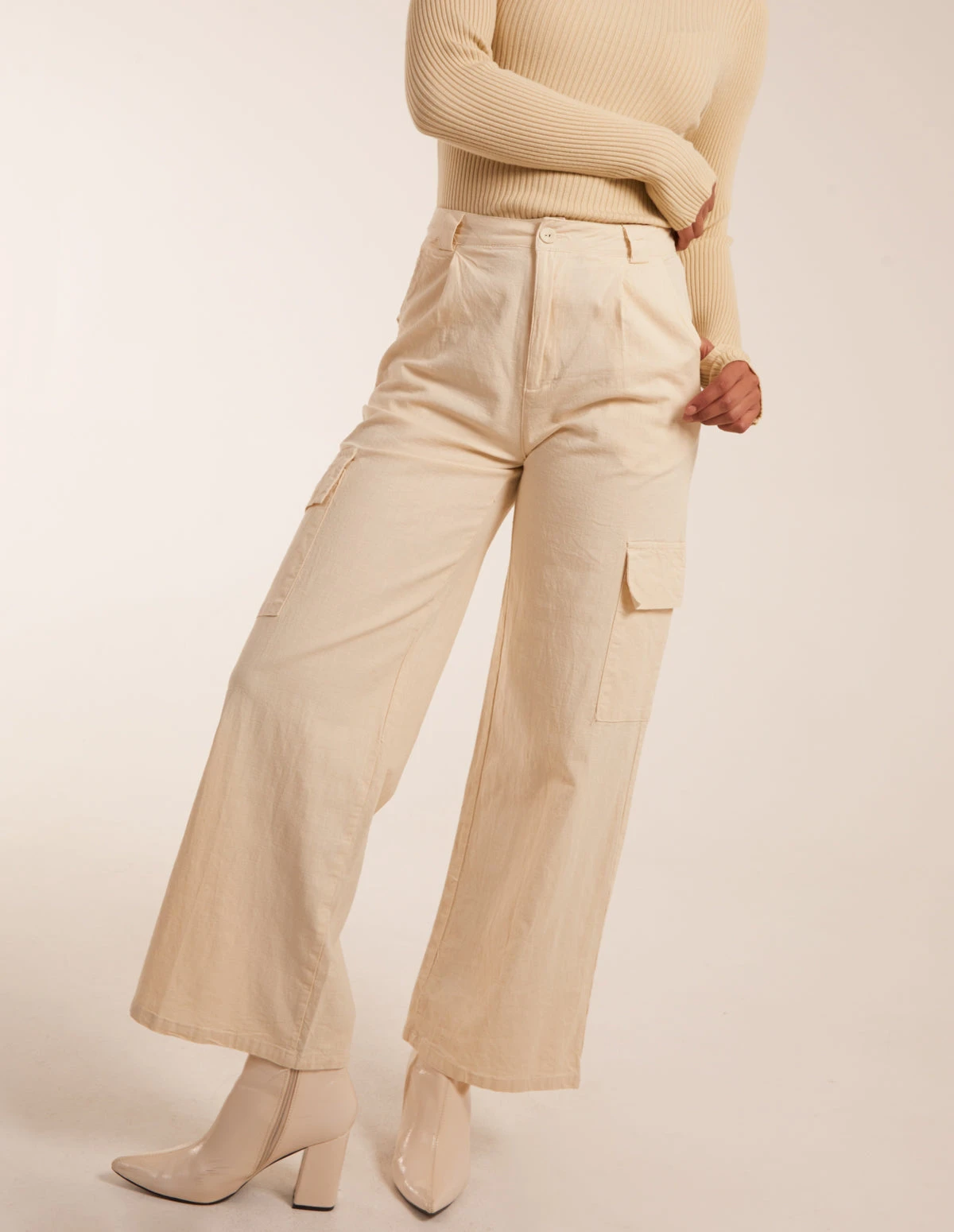 Formal pocket front linen wide leg trousers will add a touch of sophistication whatever you team them with! Whether you team these with trainers or heels these will be your go to all season long!