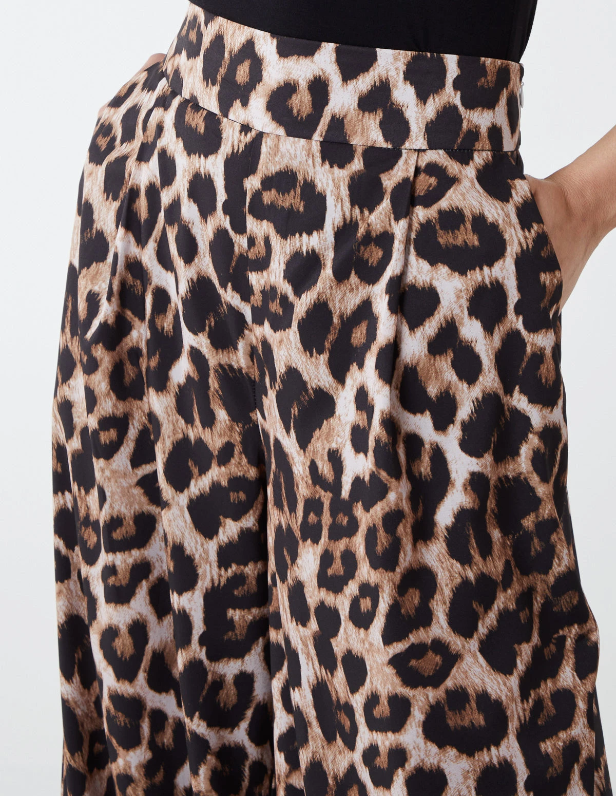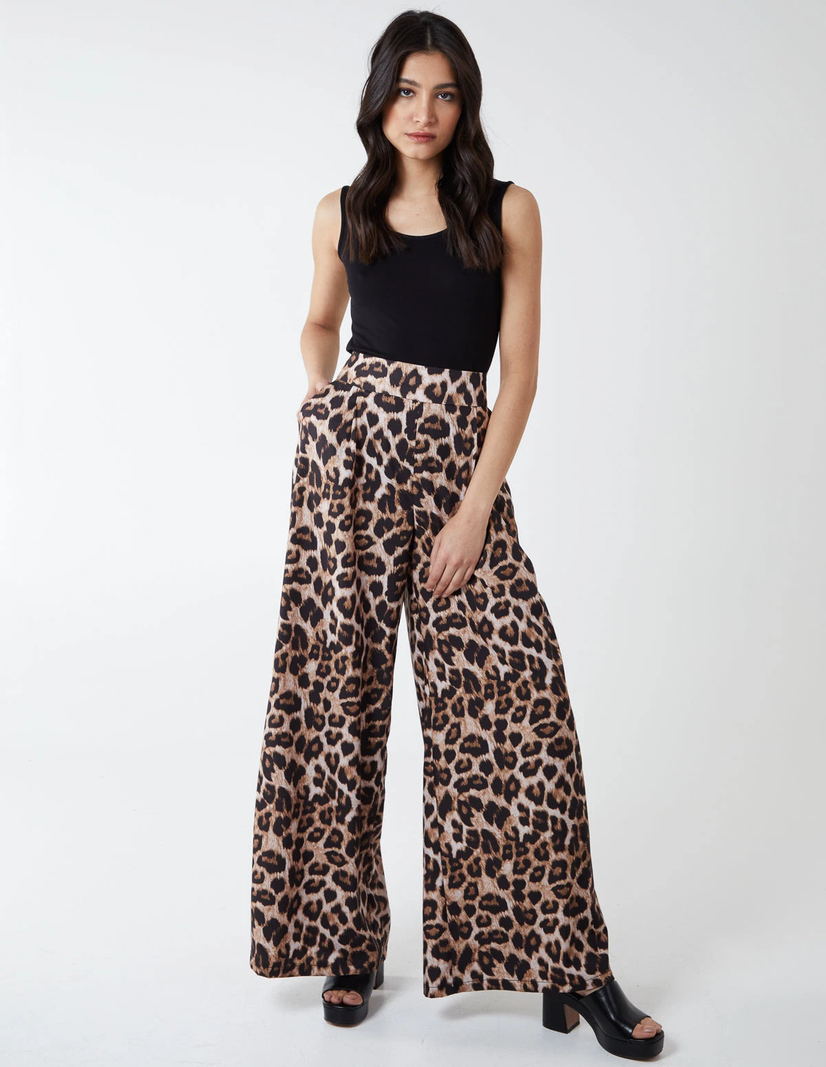 Girl get ready to strut your stuff in these leopard print trousers. Every fashionable woman needs to have at least one animal print item in their wardrobe. Add lace up heels and gold hoops for a luxe look.Â